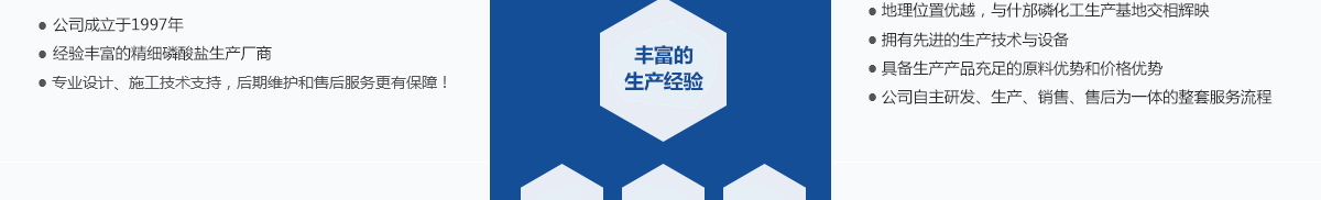 本公司位于四川省綿竹市漢旺鎮(zhèn),是自1997年成立以來至今,已發(fā)展成為四川生產(chǎn)經(jīng)驗(yàn)豐富的精細(xì)磷酸鹽系列產(chǎn)品專業(yè)生產(chǎn)廠家,地理位置優(yōu)越,毗鄰四川新市和拱星工業(yè)園區(qū),與什邡磷化工生產(chǎn)基地交相輝映。主要生產(chǎn)產(chǎn)品有:磷酸二氫鉀、酸式磷酸鉀、磷酸氫二鉀、磷酸脲、磷酸二氫鈉、磷酸氫二鈉、磷酸三鈉、磷酸二氫銨、磷酸氫二銨等系列磷酸鹽產(chǎn)品。